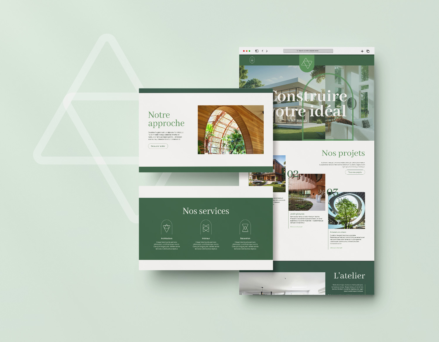 Mon objectif était de concevoir une maquette web accordée entre sobriété et naturel, tout en reprenant les éléments essentiels à présenter dans un site d’architecte. On retrouve les présentations des réalisations/projets, une partie sur l’atelier, la vision et les valeurs du cabinet, en terminant par les différents services proposés. Il s’agissait de créer un univers élégant et brut, en apportant de la chaleur et de l’humanité. Mettre en avant des designs épurés en lien direct avec la nature.